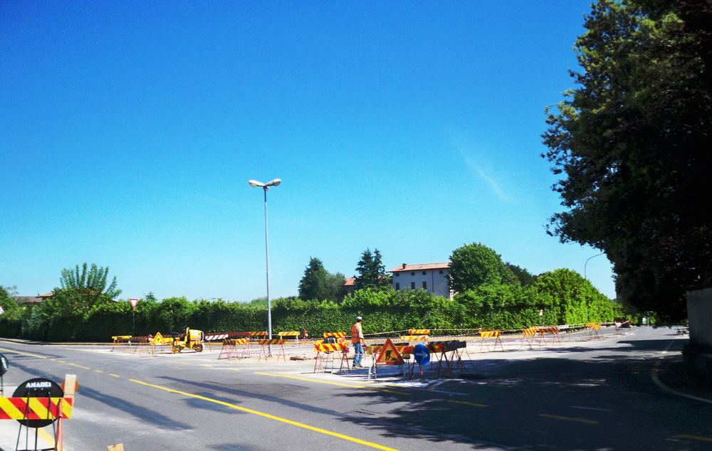 Realizzazione della nuova viabilità ed il nuovo svincolo tra Via Zublino e Via Santigaro a S. Felice d/B. La progettazione ha interessato anche la sistemazione delle aree all'interno della rotatoria.